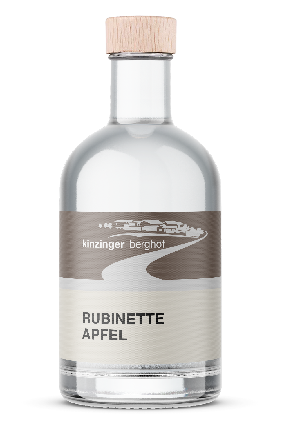 Die Apfelsorte Rubinette ist ein kleiner, würziger Apfel, der durch sein kräftiges Aroma bestens zum Herstellen eines sortenreinen Destillates geeignet ist. Die Äpfel stammen aus unserem großen Obstgarten im Nachbarort.
